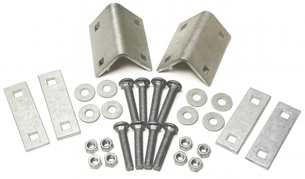 - Includes: (2) Dock Angles, (4) Washer Plates, (8) 1/2" x 3" Galvanized Carriage Bolt Sets