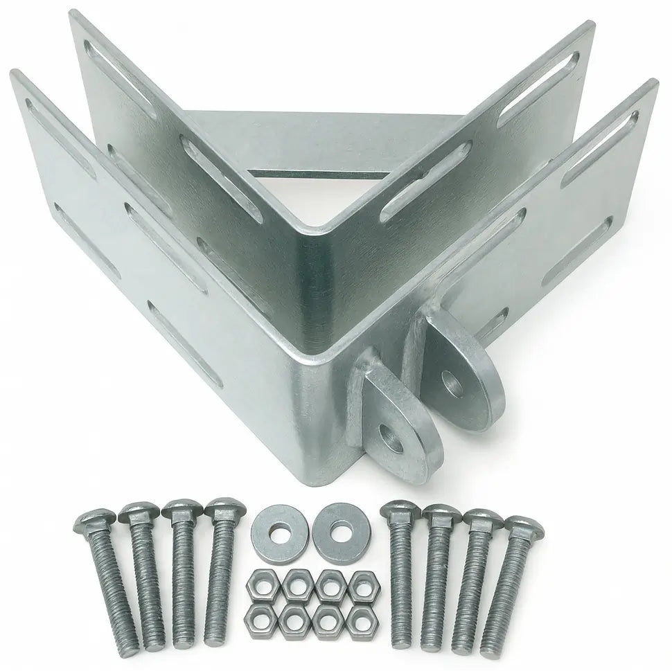 The Dock Hardware Dock Corner Connector & Fortification Kit strengthens your dock frame and gives you the ability to securely connect dock sections together. Each kit combines our heavy-duty DH-IN Inside Corner Brace with a Female DH-F Outside Corner Connector, & a complete set of galvanized carriage bolts for installation.